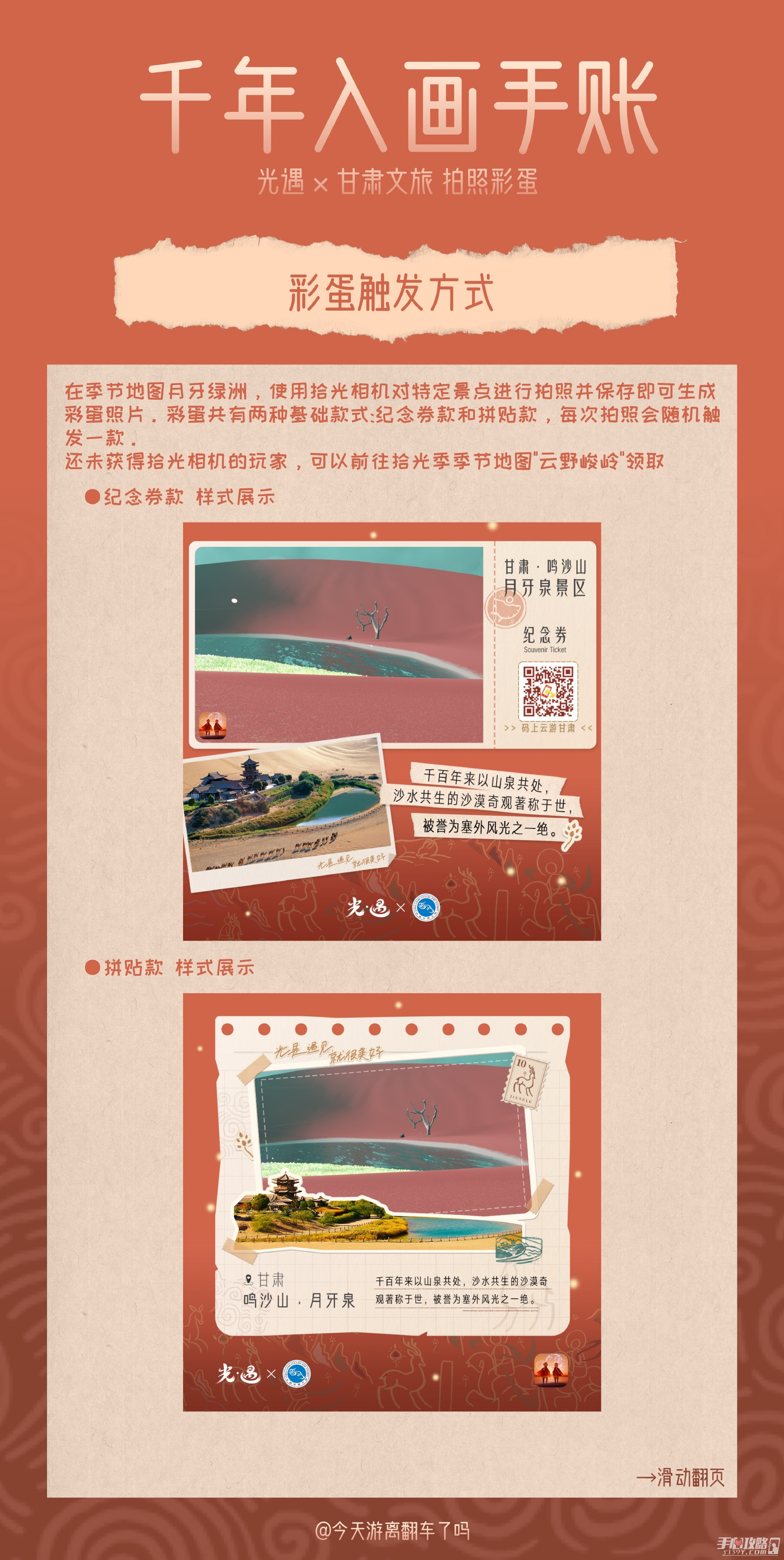 《光遇》和甘肃文旅联动了,在游戏中玩千年入画活手账活动。玩家们可以在游戏中的月牙绿洲中触发彩蛋,而且这些彩蛋会掉落纪念章,有很多的款式,大家可以去收集一下这些好看的纪念章。 《光遇》千年入画手账活动怎么玩?不少的玩家不是很清楚这个活动的玩法,在下面的攻略中就为大家带来了详细的活动玩法介绍,如果各位 阅读全文...