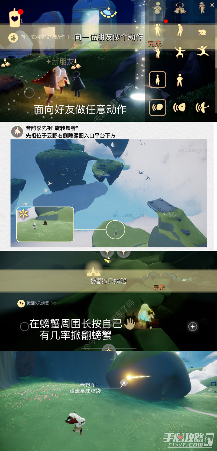《光遇》2022年12月14日每日任务怎么完成?许多的玩家不是很了解今天每日任务的完成方法,那么在下面的攻略中就为大家带来了今天每日任务的完成方法介绍。 《光遇》12月14日每日任务完成方法介绍2022 1.向一位朋友做一个动作 2.在云野重温先祖的美好回忆 3.掀翻5只螃蟹 4.追逐散落星光 阅读全文...
