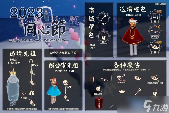 光遇同心节活动于2月13日正式开启,许多小伙伴还不知道这次活动的兑换图是什么样的,下面小编就给大家带来了光遇情人节活动兑换图一览,一起来看看吧。 光遇同心节活动兑换图 1、活动时间 2月13日 0:00 ~ 2月26日 23:59 2、活动兑换图 同心节兑换图如下,跷跷板绑季卡,其它的绑季蜡,然后 阅读全文...