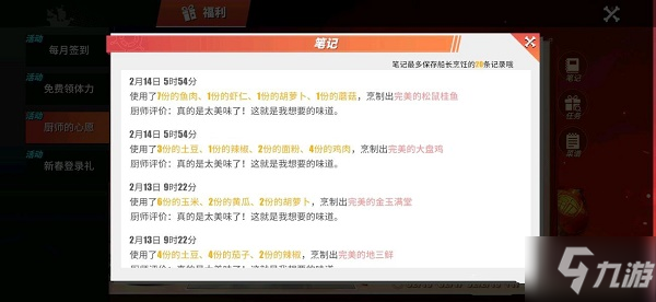 航海王热血航线地三鲜配方介绍 地三鲜 4份的土豆、4份的茄子、2份的辣椒 金玉满堂 6份的玉米。2份的黄瓜、2份的胡萝卜 活动介绍 2月10日-2月17日 -船长等级≥15级,即可前往游戏内右上角-福利-厨师的心愿界面参与活动。 -活动期间,船长通关寻宝之旅会获得食材,消耗对应食材进行烹饪, 阅读全文...