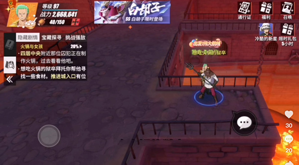 航海王热血航线火锅与女孩任务如何做?没钱,不打紧,没时间,不重要,小编为你带来航海王热血航线火锅与女孩任务方法,用对的方法为你赚取金钱和时间。 1、首先需要到四层中央得到“想吃火锅的狱卒” 2、然后去推进城路口的地点,和“偷懒的狱卒”进行对话 3、最后根据提示小伙伴们要到四层东南角落寻找树皮 阅读全文...
