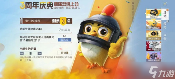和平精英三周年双倍上分活动怎么参与?这个活动中很多人都无比的关注,当然了目前的情况来看,不少人对于这个情况也不是特别的了解。下面就为大家带来和平精英双倍上分次数获取攻略。 和平精英三周年双倍上分活动介绍: 今明两天,登录游戏即可领取3次双倍上分次数,与好友组队在经典模式个人进入前15名,还可额外 阅读全文...