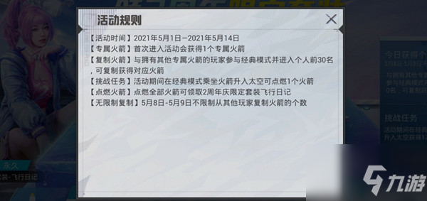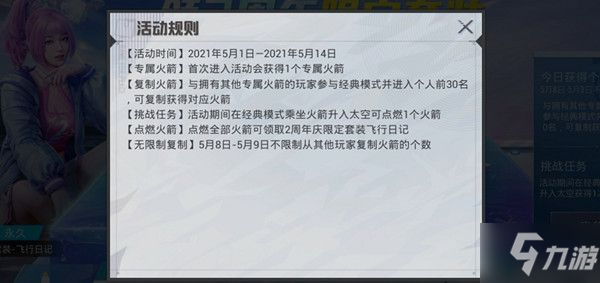 和平精英二周年庆火箭活动随之上线,那么和平精英点燃火箭活动任务怎么完成?点燃火箭一天可以点几个?在做这个活动时点燃火箭就可以免费获得二周年的限定皮肤了,所以大家千万不要错过这个福利。下面就来告诉大家如何拿到这套2周年皮肤。 和平精英的名字背后有一个火箭活动攻略 所有火箭点火,2周年限量(永久) 阅读全文...