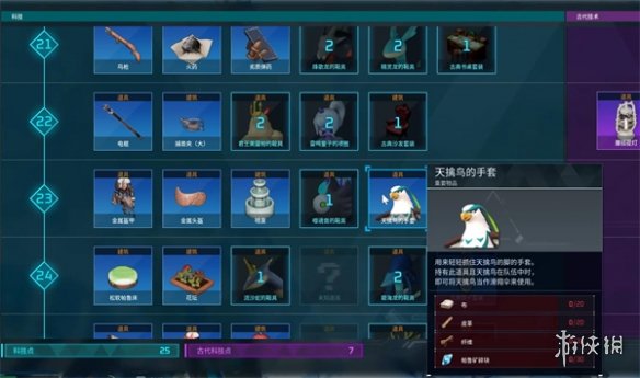 玩家在等级达到23级的时候,就能够解锁天擒鸟的手套,有了这个手套之后,玩家在滑翔的时候就能自动使用天擒鸟,而用天擒鸟进行滑翔其实非常好用,有了它之后玩家完全不需要再用滑翔伞。 幻兽帕鲁老鹰手套怎么拿 答:等级达到23级即可解锁。 1、玩家只需要把自己的等级提高到23级,就能够看到科技当中天擒鸟手套 阅读全文...