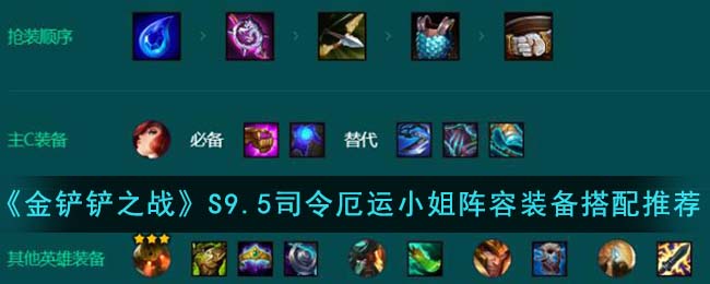 金铲铲之战S9.5司令厄运小姐阵容要怎么搭配?金铲铲之战S9.5司令厄运小姐装备搭配什么厉害?金铲铲之战S9.5司令厄运小姐用什么羁绊?金铲铲之战S9.5版本里面很多人都想要玩下这个女枪的呢,那么大家就可以尝试下这个司令厄运小姐的阵容了呢,需要搭配适合的装备还有羁绊了。 金铲铲之战S9.5司令厄运 阅读全文...