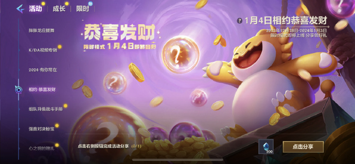 金铲铲之战近期即将开启相约恭喜发财限时模式,很多玩家不知道具体活动开放时间,下面小编为大家带来金铲铲之战恭喜发财活动时间介绍,感兴趣的小伙伴一起了解一下吧。 金铲铲之战恭喜发财什么时候开始 活动日历 【相约 · 恭喜发财】活动开启 1月4日,【恭喜发财】限时模式惊喜回归!活动【相约 · 恭喜发财 阅读全文...