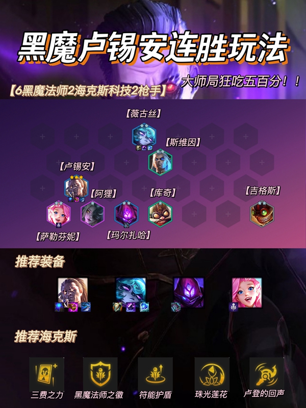 金铲铲之战S6.5中黑魔卢锡安阵容相当强势,部分小伙伴可能不清楚如何玩,下面一同来瞧瞧金铲铲之战S6.5黑魔卢锡安阵容操作详细介绍吧。 金铲铲之战S6.5黑魔卢锡安阵容操作详细介绍 这次这个黑魔枪手的操作也不例外!!教你怎样从前期到成型一路连胜到底~ 【6黑魔法师2海克斯科技2枪手】 前期依靠3 阅读全文...