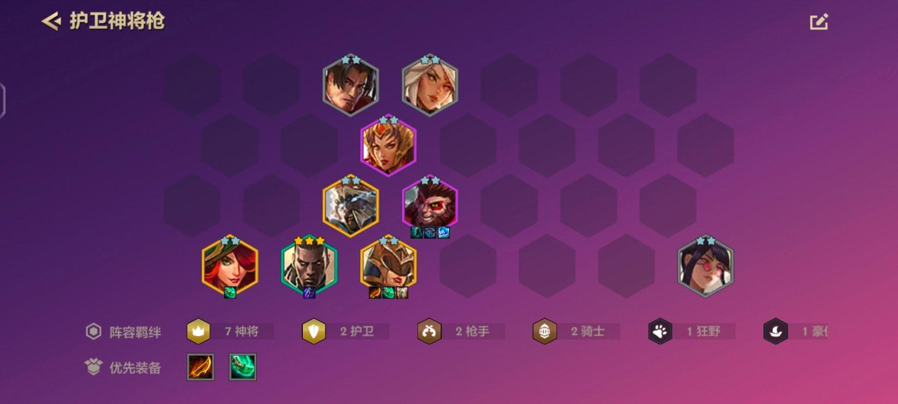 一、阵容分析 1.组成 皮城执法官(蔚)、虚空恐惧(大虫子)、蒸汽机器人、虚空遁地兽(雷克塞)、暴走萝莉(金克斯)、双枪女帝(女枪)、齐天大圣(猴哥)、南天之怒(狼人)。 6斗士 2枪手 2.出装 主C金克斯:卢安娜的飓风(飓风)/斯塔缇克电刃(电刀)、守护天使(复活甲)、巨人捕手(巨杀)/正义 阅读全文...