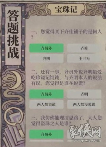 江南百景图夜闻录是最新上线的玩法,大家可以根据对话获取线索,前往不同地点探寻。下面为大家带来江南百景图夜闻录答案攻略,希望可以给大家提供帮助。 江南百景图夜闻录答案攻略 夜闻录-宝珠记 1、买下齐佳铺子的是何人?答案:齐员外 2、是谁在说谎?答案:齐员外 3、盗珠之人是谁?答案:齐员外 4、解析 阅读全文...
