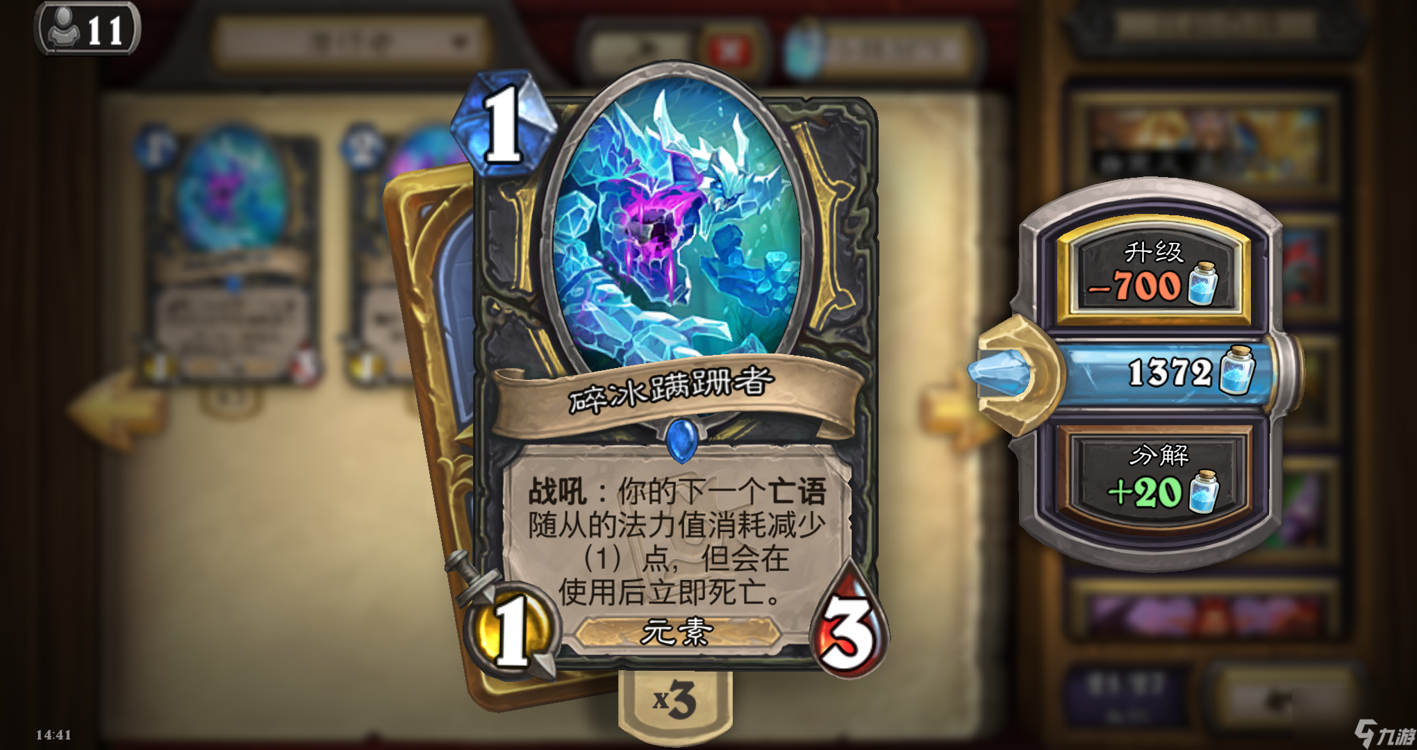 炉石传说游戏中拥有着大量的卡牌,每一张卡牌都有自己独特的技能,有许多玩家们都不知道如何才能获得卡牌,以下给大家分享炉石传说英雄牌获得方法。 炉石传说英雄牌获得方法 1、100游戏币可以购买卡包,每个卡包中含有【5张卡牌】,只有一张是蓝色或者更好品质的卡牌,有几率开出英雄卡。 2、打开【我的收藏 阅读全文...