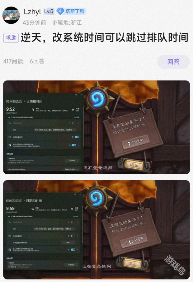 炉石传说改系统时间跳过排队时间介绍。相信很多玩家们都有在游戏排队了,其实大家可以减少排队的时间,下面小编就会详细的和大家说明,想知道的话就和小编一起往下看看,希望可以帮助到各位玩家们。炉石传说改系统时间跳过排队时间介绍1、大家可以尝试着将自己的系统时间改一下,可以改快一点。2、这样就可以跳过大家的排 阅读全文...