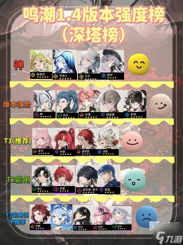 鸣潮1.4版本新增了很多角色,每个版本中的角色都有不同的性能和功能,强度榜可以让玩家快速了解当前版本中哪些角色是最值得培养和配队的,可以更快的锁定到角色。鸣潮1.4版本强度榜一览20241、强度榜我的依据,神级别除了我们熟知的三巨头,多了一个散华,现在散华的队伍也比较多,强度也很在线,相当于以前的维 阅读全文...