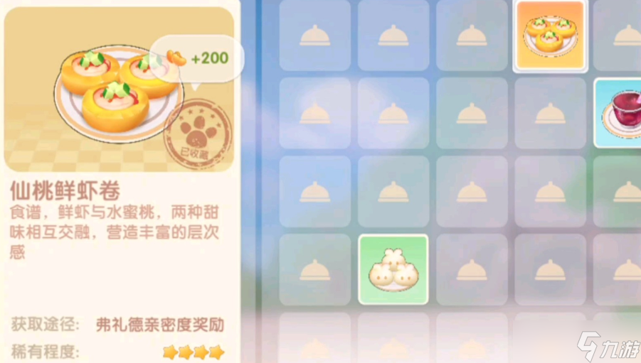 这道菜需要准备水蜜桃2个、冰川红虾1个和冰川虾2个,食材看似简单,但获取和搭配可是有讲究的。水蜜桃是家园特产,如果自家没有,记得去好友家摘取;冰川红虾和冰川虾都在拉雅雪山钓鱼获得,前者比较难钓,后者相对容易。 制作步骤很简单,进入餐厅后靠近烤箱,点击右侧的烤箱图 阅读全文...