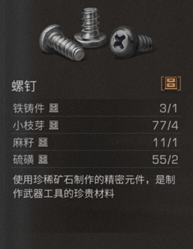 一、基本介绍工具名称:螺钉制作配方:铁铸件1个、小枝芽4个、麻籽1个、硫磺2个工具作用:使用珍稀矿石制作的精密元件,是制作武器工具的珍贵材料。 二、制作方法1、我们可以看到装备制作台,我们需要靠的近一点,如图所示。2、然后我们可以看到右边弹出一个提示,我们点击【制作】按钮。3、可以看到制作物品的 阅读全文...