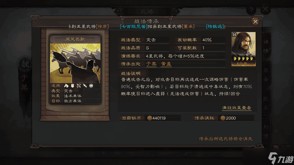 若传承的是已觉醒的武将,系统会返还觉醒时使用的材料武将。同时此前为该武将投入的战法点会按比例返还,兵书消耗的武将材料也会同步归还。这一设计降低了传承操作的资源成本,避免因操作失误导致资源浪费。一旦选择传承,该武将将永久移除且无法恢复,因此必须慎重选择传承对象。通常建议优先消耗那些拥有高价值传承战法的武将,而对传承战法实用性低、或本身是队伍核心的武将,需仔细权衡是否值得消耗。解锁传承战法后,并不能直接投入使用。初始状态下,传承战法的进度通常为30%。需要通过消耗对应星级的武将进行“演练”,B级战法需消耗三星武将,A级及以上则需四星武将,直到进度达到100%,才能正式学习到其他武将身上。这一步骤需要持续投入材料,但也是发挥传承战法效果的必要流程。 若某一战法是队伍急需的核心技能,即使该武将红度较高,也建议优先传承。反之若传承战法对队伍提升有限,则可保留武将用于进阶,通过提升红度强化其基础属性"> 武将传承是优化队伍战术体系的关键,这一机制是解锁其武将独有的“传承战法”。从而为其他武将赋予更灵活的技能搭配,最终提升队伍的实战能力。传承战法是该武将的专属技能,只有通过传承才能在战法库中解锁。这一战法可以学习到其他武将身上,让原本技能薄弱的武将获得关键强化,极大拓展队伍的战术选择空间。 三国志战 阅读全文...