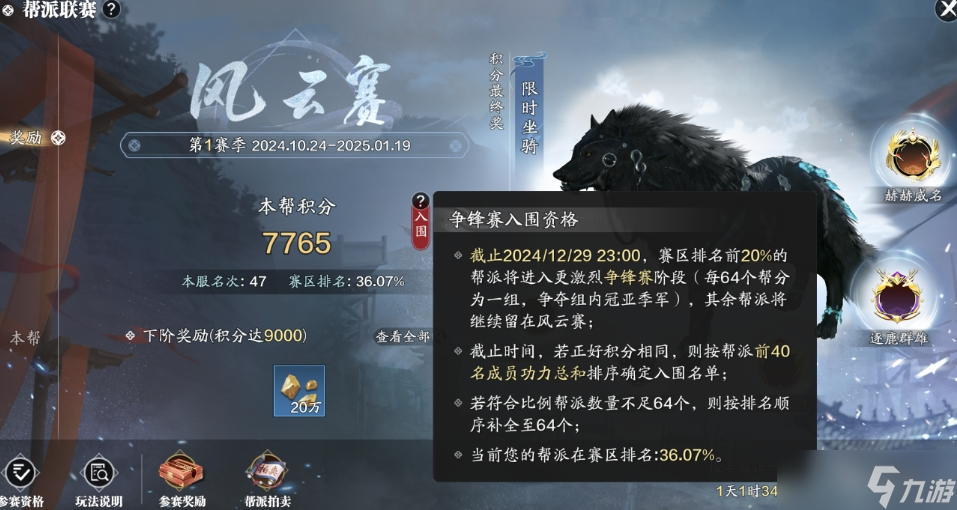 顾名思义它仅作为定位之用,没有拍卖且其他奖励相同。等到定位完毕能得到一定积分,再根据它来划分下次的对手。且赛区的范围有所扩大,像突破服不会和经典服进行碰撞。每打一场的积分不再是固定数值,会根据人数以及战场得分等进行调优。就算输了但积极度比较高的情况下,也有积分相关的加成。等积分累计一定数量后,玩家可得到万夜惊坐骑并解锁字标。根据排名一共有个人、帮派以及拍卖三种奖赏,赛后等到八点五十一就能发放。 个人奖励有令牌、碎金以及名望分等等,但需要活跃达到二十才能领。个人分一是能通过杀对面玩家来获取,二是能通过占领和杀怪来获得。帮帮派相关的奖赏则能增加资金以及繁荣度等等,至于分红能得到金叶子。就算出现没人拍的情况,也能按照一定比例得到金叶和碎金的拍卖分红。风云奖励分为多个段位,比如积分到五百的时候是一档。最终达到一万二之后,可得到限时坐骑以及群雄图标。局内玩法和之前的旧服是一样的,它主要分成主副这两种战场。 在主场里面只有管理和精英能进,里面可杀玩家、占据点或者是杀怪。里面有山字、中字以及武字等多种类型,占领完成后会有三十秒保护期。还剩十五分钟的时候这三个点会刷出小怪,还剩十分钟则会出现boss。两边都能过来对它进行攻打,成功拿到尾刀就能增加五百分。开场后的五分钟以及十分钟会刷守卫怪,玩家也需要拿到最后一击得到积分。副场的要求更低一些,里面最多能容纳八十个普通玩家。里面有技能首领以及守卫统领等多个怪,总dps最高的就能得到风云技能。 "> 相比之前不同的点在于,它不再是默认所有帮派参与。需要管理主动报名才能参加,仅需在周四和周日的时候查看状态即可。等到开赛前一小时会被锁名单,前三十分钟则会公布对手。它一共包括两场,分别是周四和周日的晚八点时间段内。且在当日的晚八点到十点有聚饮活动,可用来进行战术的指定。且赛季制中的天地赛被取消, 阅读全文...