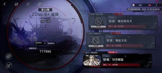 无期迷途暗域分低危区、中危区、高危区、暗域四个难度区。局长必须从低危区开始行动,当期积分达到720000分后,下一期自动进入更高难度的区域。达到暗域后不再提升难度。那么游戏中这一玩法应该怎么通过呢?小编为你准备了一份攻略,一起来看看吧~ 第一次满分,而且之前吃保底是每关只有几万的那种分(有时候简 阅读全文...