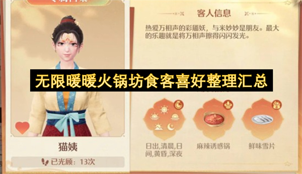 各位搭配师们,无限暖暖全新“火锅店”玩法现已上线!面对十六位口味各异、用餐时间不同的食客,您是否感到手忙脚乱?根据“游侠手游”最新发布的《无限暖暖火锅店食客喜好大全》,每位客人都有特定的锅底、食材和用餐时间偏好,例如如泉喜欢“麻辣诱惑锅+汁汁贡丸”,而糖糖则只在“日出、深夜”时段光临,喜好“酸酸甜 阅读全文...