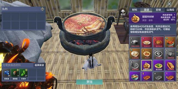 妄想山海北山菜谱制作大全最新 甜甜炸时鲜: 洞冥果、甜酱、蔬菜 炫光青炒: 葶苎蕊、调料、蔬菜 极味辣鱼: 荀草根块、辣酱、蓝色品质鱼 九穗荷包蛋: 九穗米、蛋液、甜酱、水 洞冥果汤: 洞冥果、野果、水 根块烤鱼: 荀草根块、肉、绿色品质鱼 青菩米汤: 九穗米、青菩果、水 荀草根块, 阅读全文...
