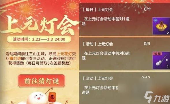 国产手游,因为最近是元宵节的缘故,所以妄想山海也是给大家在游戏中上线好了全新的元宵节活动了。在这次活动中我们是需要去回答出游戏中的灯谜的答案的,下面是我给大家带来的全部灯谜的正确答案了,希望大家喜欢。 妄想山海2024元宵猜灯谜答案大全 1.身穿大皮袄,野草吃个饱,过了严冬天,献出一身毛,打一动物 阅读全文...