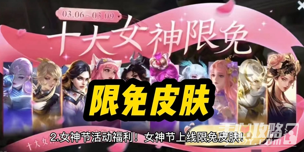 38女神节马上就要到了,在王者荣耀游戏中会开启相关的活动,游戏中会有限免的皮肤可以体验,今年的限免皮肤还是会有十个,那么具体有哪些皮肤呢,接下来小编为大家带来了详细介绍。 活动时间:3月6日-3月9日 限免皮肤: 貂蝉-猫影幻舞 伽罗-箭雨风息 露娜-紫霞仙子 云樱-赤焰之缨 大乔-猫狗日记 芈 阅读全文...