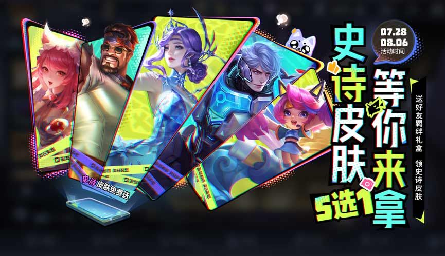活动时间:7月28日逐步开放~8月6日23:59 活动期间,通过邀请好友回归王者峡谷获得羁绊积分,累计羁绊积分达到指定数值获得羁绊之旅头像框和史诗皮肤5选1宝箱!回归的召唤师可以获得专属羁绊礼盒 本次可以免费领取史诗皮肤的活动叫做「羁绊之旅、峡谷再续」,该活动7月28日上线 阅读全文...