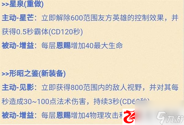 王者荣耀中有着许多的装备可以供玩家选择搭配,每个英雄因为定位不一样所以选择的装备也是不一样的。形昭之鉴作为新出的一个辅助装备,装备的属性怎么样呢?接下来小编就为大家简单介绍一下形昭之鉴这个装备~ 王者荣耀形昭之鉴装备属性介绍 1、主动-见影:立即获得800范围内的敌人视野,并对其每秒造成30~1 阅读全文...