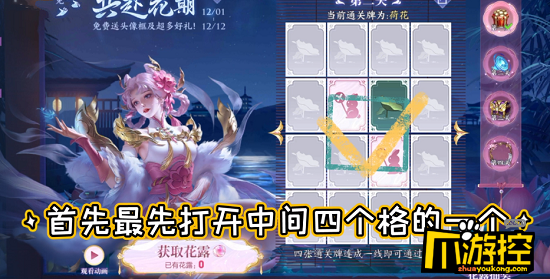 王者荣耀共赴花期活动怎么做?王者荣耀共赴花期活动需要玩家把九宫格连线才能获得奖励,小编带来王者荣耀共赴花期活动攻略。 王者荣耀共赴花期活动攻略 1、活动时间:12月1日-12月12日 2、活动形式:完成任务获取花露即可翻牌,活动面板中每四张通关牌连成一条线(包括横线、竖线和对角线)即可通过一个小 阅读全文...