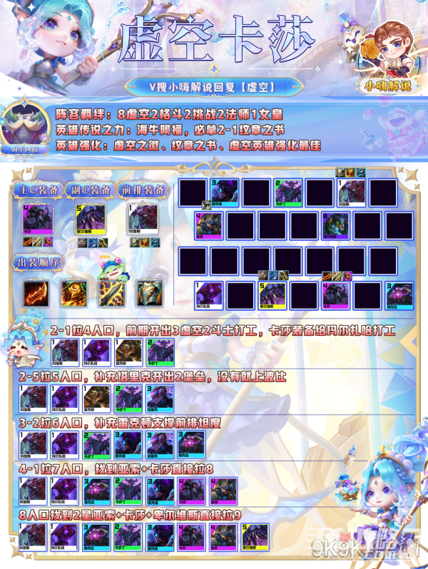 在云顶之弈游戏中,S9赛季里虚空卡莎阵容玩家应该怎么搭配呢?看来还是有很多小伙伴们都还不是很清楚吧,那么接下来就与小编一起来看看《云顶之弈》S9虚空卡莎阵容推荐介绍吧。 《云顶之弈》S9虚空卡莎阵容推荐 1.云顶之弈s9虚空卡莎阵容组成:科加斯、玛尔扎哈、卡萨丁、雷克顿、卡莎、维克兹、亚索、卑尔维 阅读全文...