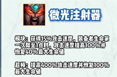 云顶之弈最近s9赛季当中加入了全新的祖安装备,这个羁绊可以给玩家提供额外的祖安装备,这些装备都十分的强力,不过很多的玩家并不清楚这些祖安装备有哪些,那么下面就由小编来大家了解一下这些祖安装备吧。 云顶之弈s9祖安装备效果是什么 1、微光注射: 模块:获得15%攻击速度,装备者生命第一次降至1点时 阅读全文...