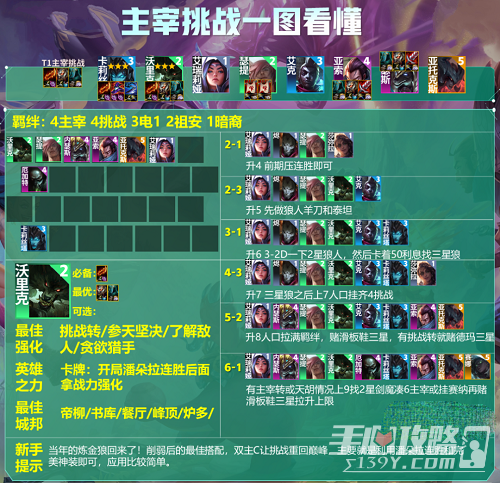 在云顶之弈游戏过程中,有很多用户们不清楚《云顶之弈》S9六主宰阵容搭配攻略,接下来小编给用户们带来《云顶之弈》S9六主宰阵容搭配攻略,如果还有其它问题,可在本站中详细了解云顶之弈所有攻略。 《云顶之弈》S9六主宰阵容搭配攻略 1、阵容成员:诺手+剑魔+狗头+盖伦+皇子+沙皇+瑟提+狼人 2、阵 阅读全文...
