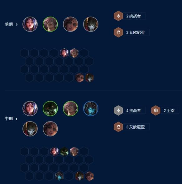 【六艾欧卡莎】6艾欧尼亚4挑战2主宰 针对高费卡为主C的阵容。一般情况下2-1升4,2-5升5,3-2升6,4-1/4-2升7。前期尽量用强势棋子与羁绊打工,保证打工棋子2星,进而稳定血量健康。尽量使用利息升级,步入7与8阶段,7级、8级替换低费打工卡,向以4-5费棋子为核心阵容转型。 一、传说 阅读全文...