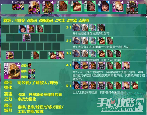 云顶之弈s9赛季中有很多阵容都可以体验,其中T1的433沙皇很多玩家不知怎么玩,下面小编就为大家带来了《云顶之弈》433沙皇阵容玩法攻略,感兴趣的小伙伴们一起来看看吧, 希望能对大家有所帮助。 《云顶之弈》433沙皇阵容玩法攻略 1、433沙皇阵容:沙皇+皇子+岩雀+提莫+斯维因+盖伦+拉克丝+ 阅读全文...