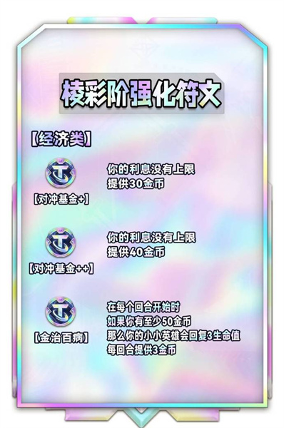 云顶之弈s9海克斯全览图已经为玩家们整理好了,因为游戏最新赛季的更新,玩家们也可以体验到更多欢乐的游戏挑战,有不少玩家想知晓云顶之弈s9海克斯羁绊效果有哪些,下面赶紧来看看吧。 云顶之弈s9海克斯全览图 一、经济类 1、对冲基金+ 2、对冲基金++ 3、金治百病 二、功能类 1、奕士的利器 2、 阅读全文...