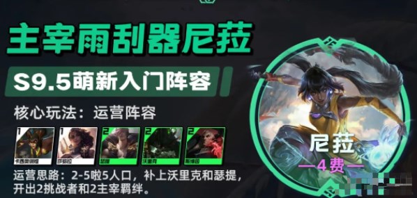 云顶之弈s9.5主宰尼菈怎么玩?以主宰尼菈为核心搭配的阵容,这套阵容的运营模式并不难,具体的玩法可以参考下面的攻略,小编会把主宰尼菈阵容的搭配技巧都分享在攻略中,这套阵容运营到后期就会很厉害,详细的请多参考攻略。 云顶之弈s9.5主宰尼菈阵容推荐 1、阵容成员:尼菈、阿兹尔、厄运小姐、嘉文四世、 阅读全文...