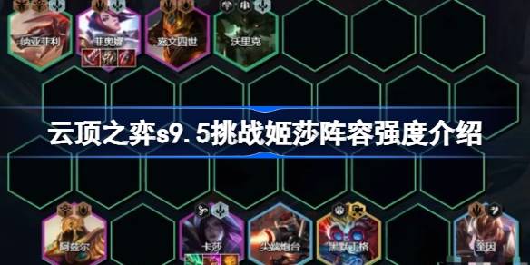 云顶之弈是一款自走棋类型的养成对战手游,在游戏里面玩家可以顺利的知道不一样的阵容可以面对的对手是不一样的,最近很多玩家不知道s9.5挑战姬莎阵容厉害吗,下面就让我们来看看云顶之弈s9.5挑战姬莎阵容强度介绍。 云顶之弈s9.5挑战姬莎阵容强度介绍 1、阵容成员:菲奥娜、纳亚菲利、嘉文四世、沃里克 阅读全文...