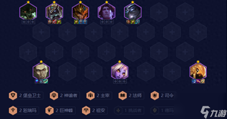 阵容组成:希尔科(四费)、沙漠皇帝 阿兹尔(四费)、沙漠死神 内瑟斯(四费)、暮光之眼 慎(四费)、德玛西亚皇子 嘉文四世(四费)、瓦罗兰之盾 塔里克(三费)、祖安怒兽 沃里克(二费)、众星之子 索拉卡(二费) 组成二堡垒卫士、二神谕者、二恕瑞玛、二巨神峰、二主宰、二司令、二法师、二祖安八人口八羁 阅读全文...