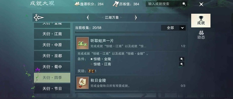 一梦江湖天衍系统实质上是一个成就系统,通过达成天衍系统中的各种成就来完成。下面我来介绍一下不同的成就的完成方式。短期任务达到目的地或者赠送相关物品就可以完成的成就。那么游戏中听取蛙声一片成就怎么完成,小编为你准备了一份攻略,一起来看看吧~ 江南地图输入坐标自动寻路,注意青蛙都是在水里的严州城(9 阅读全文...