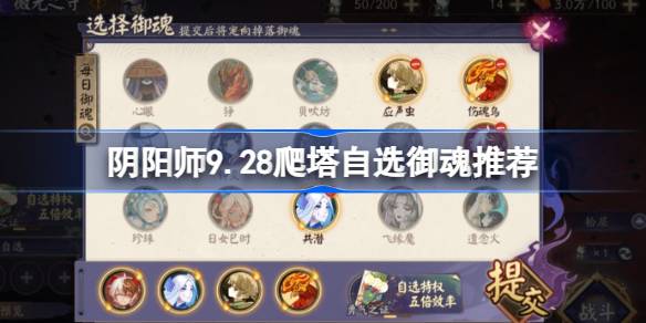 阴阳师最近开启了周年庆活动渺念之旅,这个活动会掉落自选御魂,那么大家知道阴阳师9.28爬塔自选御魂选什么吗?现在小编带来了阴阳师渺念之旅御魂选择9.28,一起来看看吧。 阴阳师9.28爬塔自选御魂推荐 输出类: 应声虫/伤魂鸟/心眼/青女房 (缺啥补啥) 辅助类: 招财共潜日女遗念火/钟灵 搭配 阅读全文...