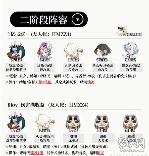 阴阳师毁灭之战如何打出高伤害是很多小伙伴想知道的,所以本期攻略我们就来一起看看下面这套高配挂机满收益思路伤害5KW的阵容配置,感兴趣的玩家一定不要错过哦! 阴阳师毁灭之战5KW伤害高配挂机阵容推荐 1、神代终局二阶段依旧继承活动BUFF,所以输出70暴击即可满暴。SP面需要是全队爆伤最高单位,八百 阅读全文...