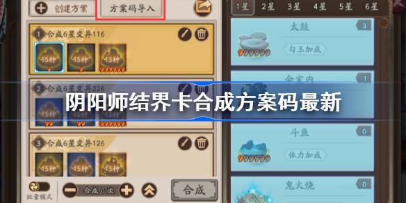 阴阳师结界卡合成是需要一定的规则的,很多小伙伴不想自己设置,那么结界卡合成方案码想必是大家最想要的,今天小编为大家带来的是2023阴阳师结界卡合成方案码,可以合成太鼓哦!下面小编为大家带来阴阳师结界卡合成方案码最新2023,感兴趣的小伙伴一起了解一下吧。 阴阳师结界卡合成方案码最新 一、结界卡合 阅读全文...