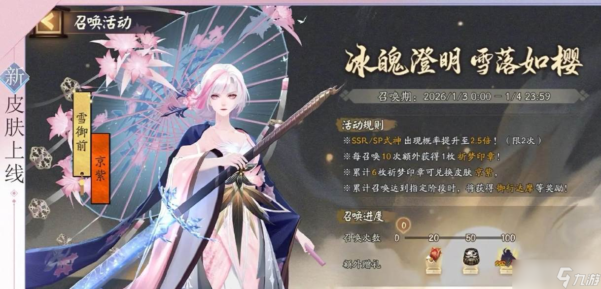 《阴阳师》雪御前典藏皮肤「京紫」已上线限时获取活动,凭借冰晶凝剑、霞色衣袂的绝美设计,成为玩家必争的限定外观。结合活动规则与关键提醒,以下是详细获取指南: 一、雪御前?京紫核心获取信息 活动时间:2026 年 1 月 3 日维护后 - 1 月 4 日 23:59,仅开放 2 天,且皮肤首次上架 阅读全文...