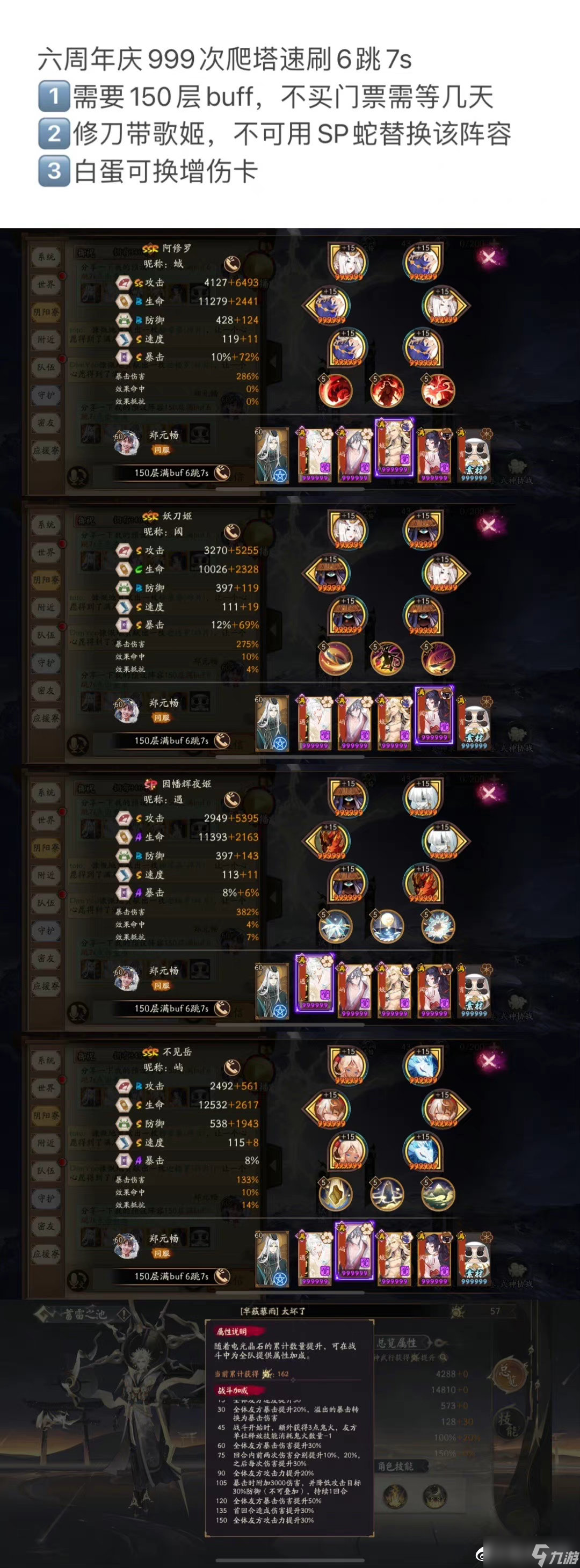 阴阳师体验服已经正式上线了周年庆活动,而在周年庆活动中有一项爬塔活动生物学,很多小伙伴想知道阴阳师神武行周年庆爬塔速通阵容怎么搭配,现在就和小编一起来看看阴阳师神武行爬塔阵容推荐的相关内容吧。 阴阳师神武行爬塔阵容推荐 六周年庆神武行爬塔速刷6跳7s 1.需要150层buff,不买门票需等几天即可 阅读全文...