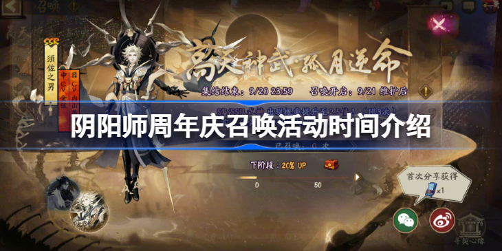 阴阳师六周年将至,官方现已开启六周年庆专属召唤活动,玩家参与活动可以与须佐之男、神启荒结缘,下面小编为大家带来阴阳师周年庆召唤活动时间介绍,感兴趣的小伙伴一起了解一下吧。 阴阳师六周年庆专属召唤什么时候开始 六周年庆专属召唤活动开启 全新SSR阶式神须佐之男、SP阶式神 神启荒 即将降临平安京, 阅读全文...