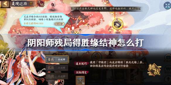 阴阳师夏境巡游sp缘结神残局得胜怎么过?最新活动中的sp缘结神残局得胜挑战已经开启,想要知道通关的方法可以多参考下面的攻略,游戏鸟小编将会为大家提供sp缘结神残局得胜的具体打法,各位小伙伴赶紧来多了解一下吧。 阴阳师夏境巡游sp缘结神残局得胜攻略 一段(敌方从左到右):座敷童子(火灵);兵俑(招 阅读全文...