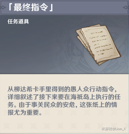 终末番的任务 前往稻妻的冒险家协会的路上,被人撞了一下,塞给我们一张小纸条,任务就此开始 前往安全屋 『手里剑』= 忍者 = 终末番 『铁门』 = 安全屋 暗号纸条 前往安全屋和玄冬林檎对话,拿到「愚人众暗语表」和被套话的三个人 愚人众暗语表 被套话的人 寻找三位间谍 (1)离岛附近的人,对 阅读全文...