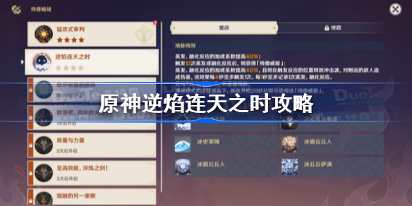 可能有一些小伙伴不太清楚原神残像暗战活动第二天的关卡逆焰连天之时要怎么过,那么下面小编就给大家带来原神逆焰连天之时攻略,感兴趣的小伙伴可以了解一下。 原神逆焰连天之时攻略 Day2:逆焰连天之时 今日buff: 今日Buff对融化/蒸发反应有所加成,且怪物阵容中有护盾的怪物为冰属性元素护盾, 阅读全文...