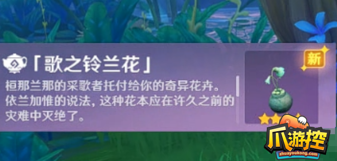 原神歌之铃兰花怎么获得?歌之铃兰花是游戏中新上线的家具,下面为各位整理出原神歌之铃兰花获取攻略,希望可以帮助到你。 原神歌之铃兰花获取攻略 1、传送到桓那兰那的七天神像,让使桓那兰那处于梦境。 2、天空是紫色的,往地图西南方向找到兰加惟。 3、找到兰加惟对话选择无忧节的歌。 阅读全文...