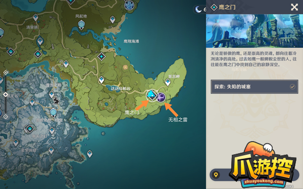 1、进入游戏后打开地图看见鹰之门后选择鹰之门传送。 2、到达鹰之门后右转然后爬到鹰之门后面的山顶。 3、到达山顶后面前的紫色方块就是无相之雷了。 阅读全文...