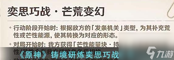 铸境研炼奕思巧战荒芒变换是原神中的最新活动,许多玩家不知道荒芒变换怎么做吧,那么不妨来看看下面关于原神铸境研炼奕思巧战芒荒变幻攻略吧。 原神铸境研炼奕思巧战芒荒变幻攻略 敌人介绍: 特殊条件: 1、在对局开始时可以获得一个芒性能量块持久,并且会在我方切换角色后切换属性。 2、在行动阶段开始时我 阅读全文...
